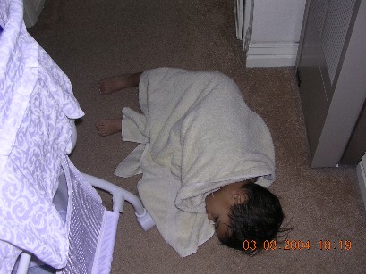 Having a quiet tantrum after my bath.