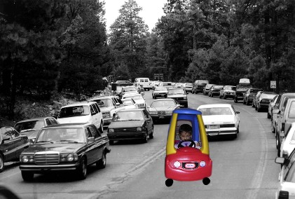 In a traffic jam... Moon face! I'm a cowboy! No traffic this time. HOME